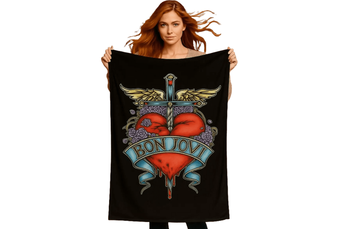 Kuschel dich in Rock’n’Roll! Die Bongiovi Heart Kuscheldecke vereint Komfort, Stil und das ikonische Bon-Jovi-Herzlogo. Weich, warm und perfekt für echte Fans – dein Must-have für legendäre, gemütliche Momente! 🖤🎸